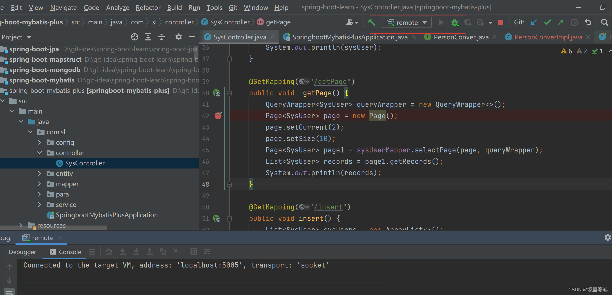 - 本地代码监听远程调试端口,在在本地需要调试代码打下断点。