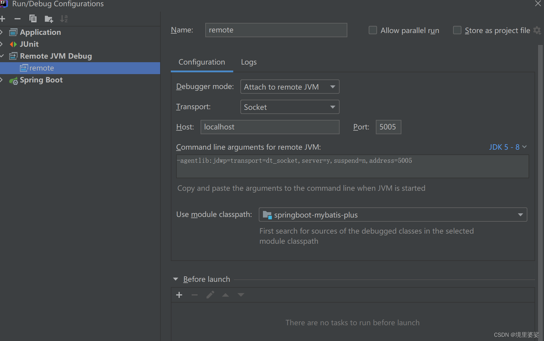 java -agentlib:jdwp=transport=dt_socket,server=y,suspend=n,address=5005 -jar spring-boot-mybatis-plus-0.0.1-SNAPSHOT.jar