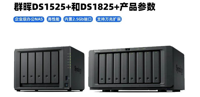 群晖在2025年重磅推出了两款全新的Plus系列NAS——DS1525+与DS1825+,这两款设备分别面向中小企业、创意团队以及成长型企业,提供高性能、强大的扩展性和全面的安全功能。它们不仅支持更快的网络连接、SSD缓存加速,还能够灵活扩展存储容量,满足企业用户的各种需求。