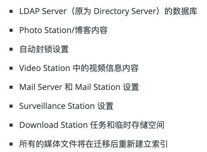 然后再将重要数据备份至其他存储介质中,以防意外发生,无法挽回,需要注意的是,下图中的数据通过这个方法,是无法迁移到新 NAS 中的,一定要做好心理预期