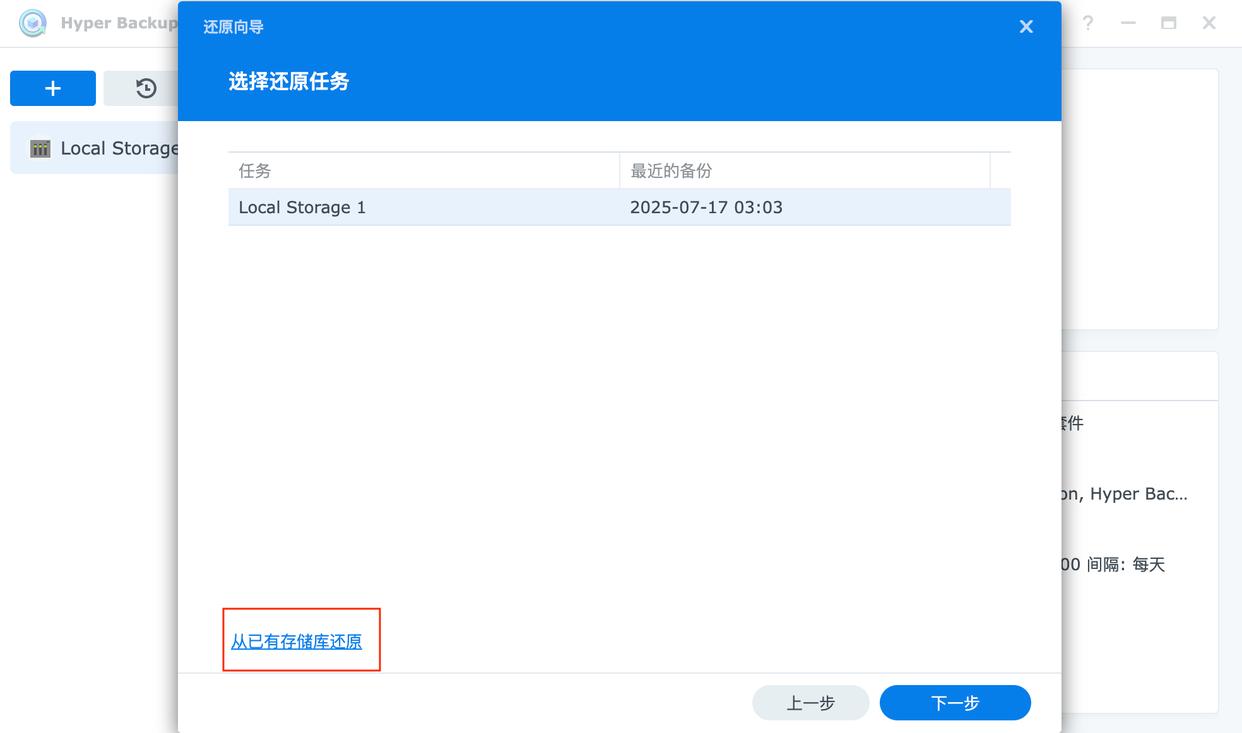 *注:Hyper Backup Vault 仅需在远程备份的目的地 NAS 上进行安装。例如,当通过USB移动硬盘来备份和还原时,新 NAS 上可以不用安装 Hyper Backup Vault