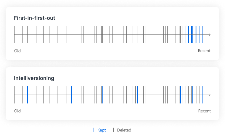 Intelliversioning 智能版本控制算法能够识别文件的重要性,筛选关键历史版本,节省存储空间,同时确保在出现数据丢失或修改错误时能够快速回溯。企业可根据需求设置版本保留策略,满足合规管理和审计要求,提升数据管理的专业性和安全性。