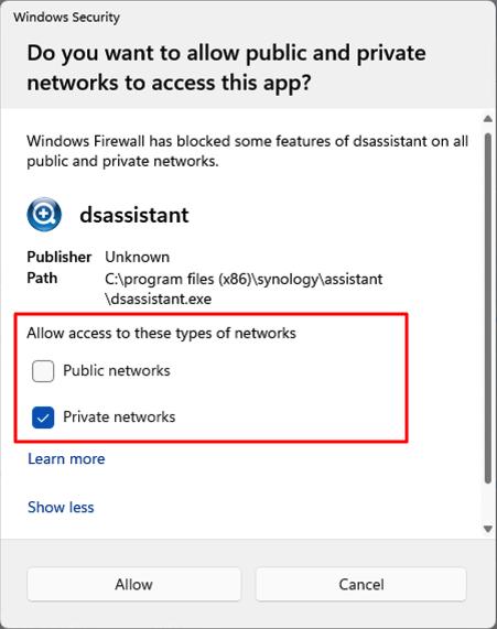 二、在 Windows 防火墙中允许 Synology Assistant 通行