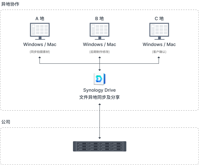 通过 Synology Drive 与 ShareSync,企业能够轻松实现跨地域实时同步、多版本备份、高效协作与数据安全管理。