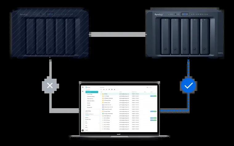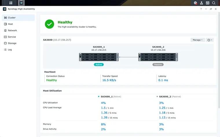 Synology 提供可视化的操作界面,管理员只需数个步骤,即可将两台 NAS 组成一个完整的高可用集群。配置完成后: