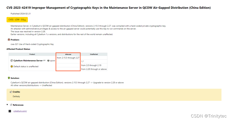 这个问题是在Cybellum的QCOW air-gapped分布的维护服务器中发现的,专门在中国部署,影响版本为2.15.5到2.27。