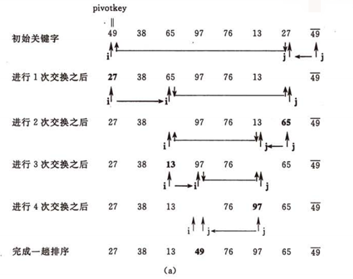 把整个序列看做一个数组,把第零个位置看做中轴,和最后一个比,如果比它小交换,比它大不做任何处理;交换了以后再和小的那端比,比它小不交换,比他大交换。这样循环往复,一趟排序完成,左边就是比中轴小的,右边就是比中轴大的,然后再用分治法,分别对这两个独立的数组进行排序。