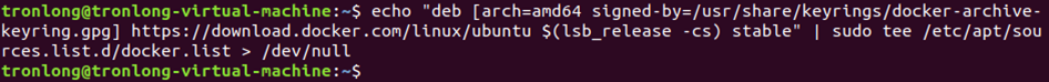 Host# echo "deb [arch=amd64 signed-by=/usr/share/keyrings/docker-archive-keyring.gpg] https://download.docker.com/linux/ubuntu $(lsb_release -cs) stable" | sudo tee /etc/apt/sources.list.d/docker.list > /dev/null