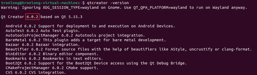 执行如下命令,查看Qt Creator版本。