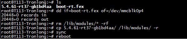 Target# dd if=boot-rt.fex of=/dev/mmcblk0p4