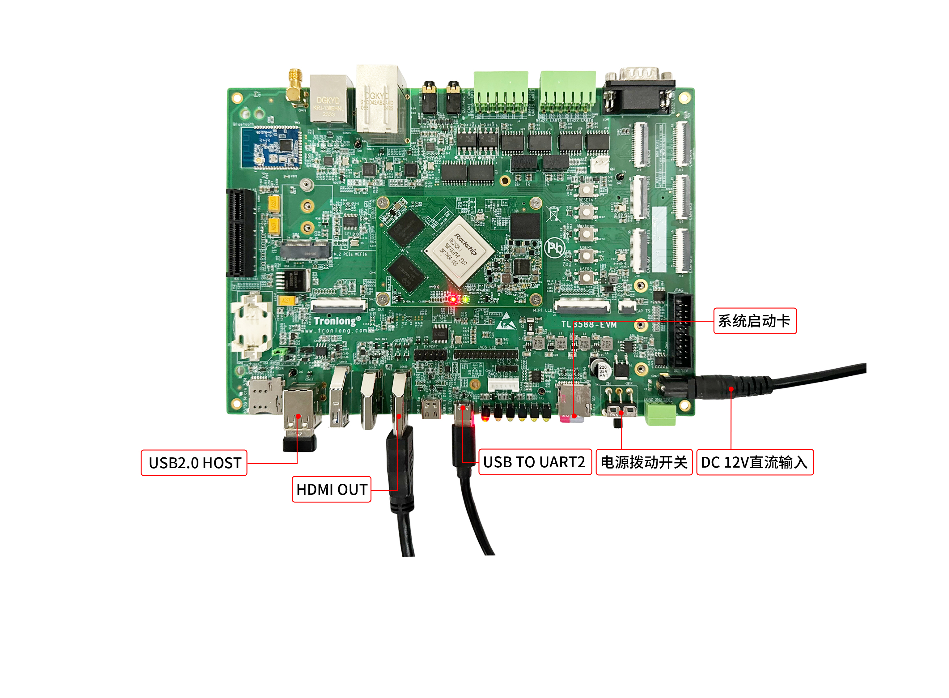 备注:请在评估板上电前正确连接硬件,并确保HDMI显示屏通过HDMI显示,否则HD