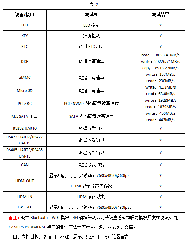 备注:本文基于4GByte DDR、32GByte eMMC配置核心板进行测试,不同配置型号核心板实测结果可能存在偏差。