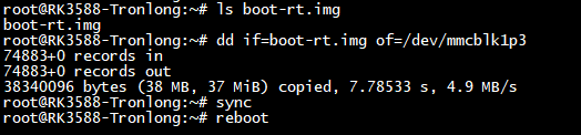 Target# dd if=boot-rt.img of=/dev/mmcblk1p3