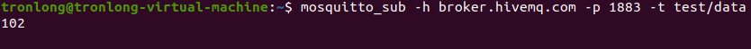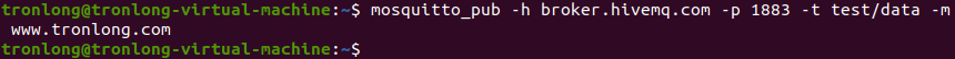 Host# mosquitto_pub -h broker.hivemq.com -p 1883 -t test/data -m www.tronlong.com