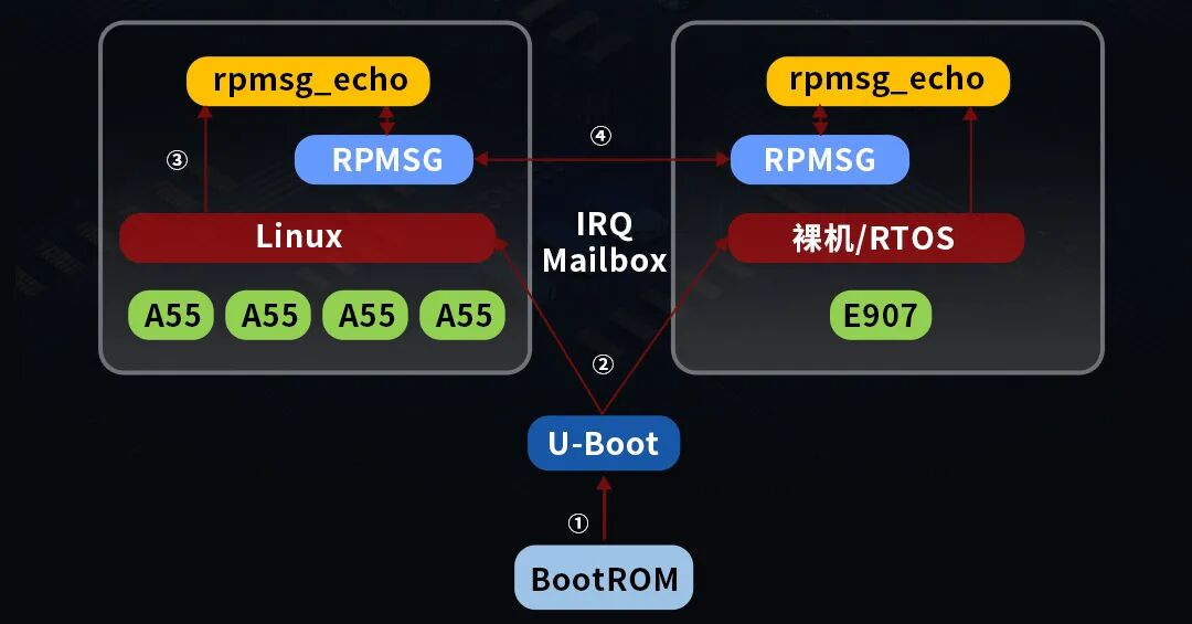 主核专注运行GUI界面、网络通信等复杂应用,从核则负责实时性要求更高的任务,如传感器数据采集、定时器中断响应等。