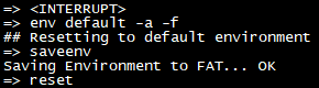 如需恢复U-Boot环境变量,在U-Boot命令行模式执行以下命令。