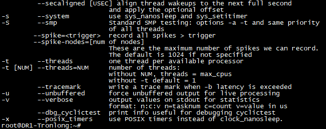 Cyclictest命令参数解析可执行"cyclictest --help"查看,如下图所示。