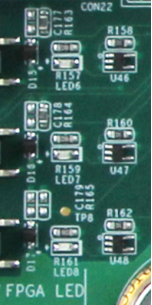 开发板底板具有3个ARM端用户可编程指示灯LED3、LED4、LED5和3个FPGA端用户可编程指示灯LED6、LED7、LED8,原理图如下: