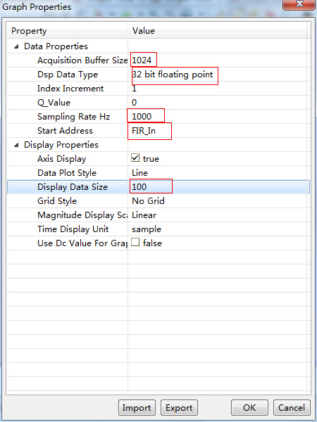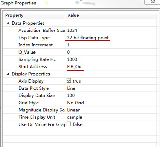 点击CCS菜单"Tools->Graph->SingleTime",在弹出的界面中按下图数值设置参数。