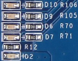 核心板上面也有3个LED灯,核心板上丝印为D4的是核心板电源指示灯,D5和D6是用户可编程LED灯。以下为核心板的LED灯和说明: