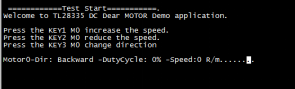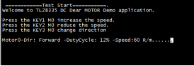 第一次按下按键1后,减速直流电机开始顺时针(Forward)转动,占空比(DutyCycle)约为12%,转速(Speed)约为60R/min,显示如下图所示: