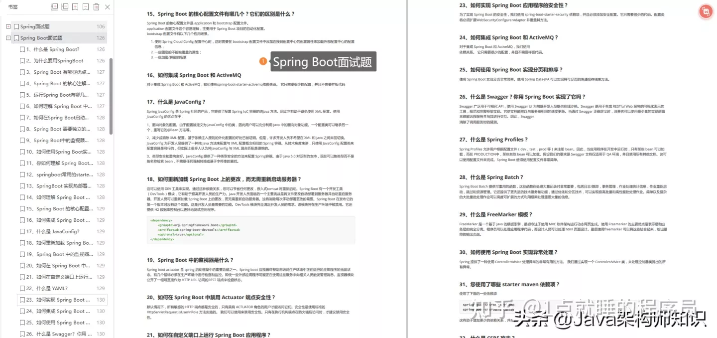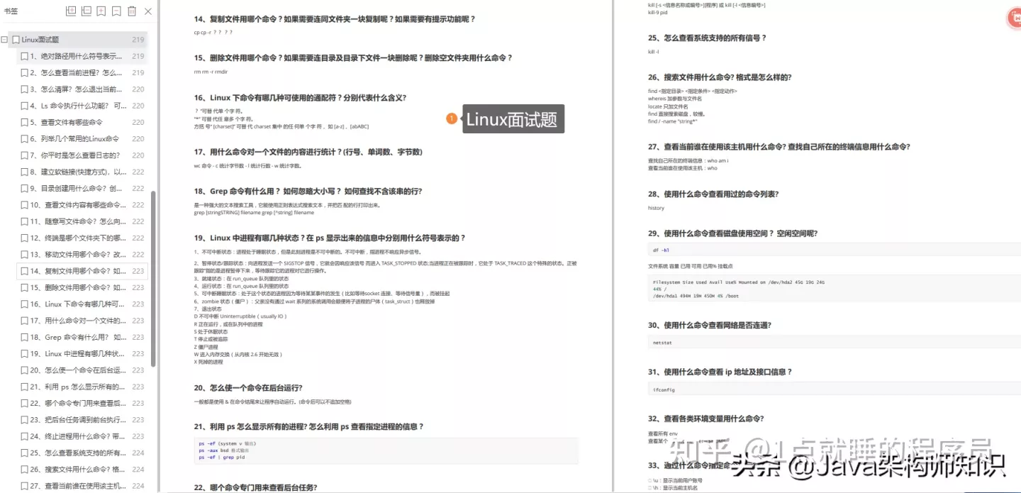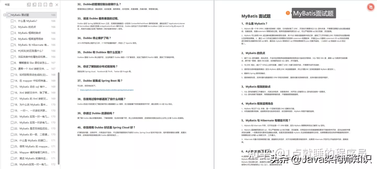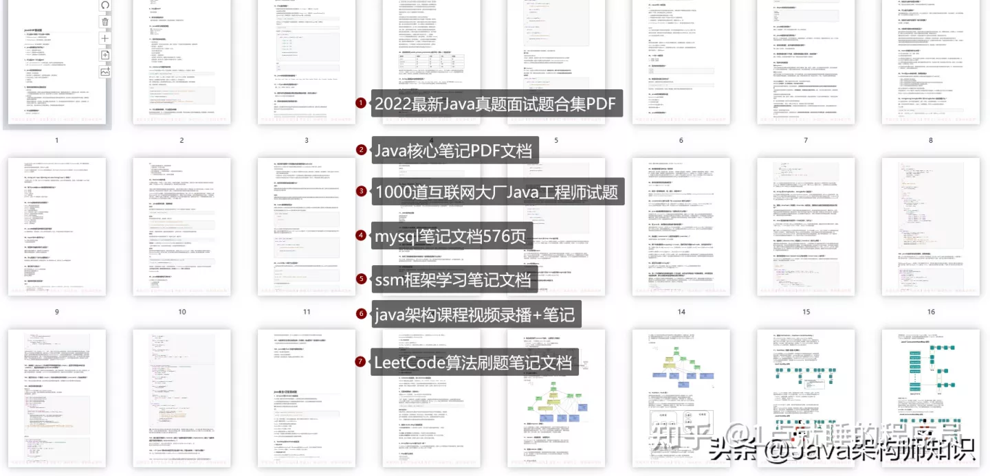 本篇分享的面试题内容包括:Java、MyBatis、ZooKeeper、Dubbo、Elasticsearch、Redis、MySQL、Spring、Spring Boot、Spring Cloud、RabbitMQ、Kafka、Linux 等技术栈。资料获取方式:文末免费扫描获取