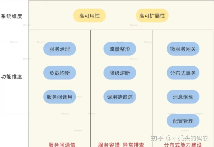 后来找到了一个蛮不错的经验帖说:可以按照“三大功能、两大特性”来学,服务间通信最基础,适合作为初学者学习微服务技术的切入点;构建起基础的通信能力之后,接下来考虑构建服务容错能力,提高服务调用的稳定性。在这之后,就可以从全局的角度构建一些分布式支持特性了。