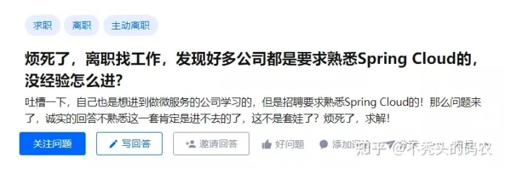 说说我的经验吧,让我不断在放弃中摇摆的主要原因,还是这块的知识太零散了。微服务体系本就庞大,我怀疑框架组件比我头发都多,概念学了很多,但大部分都很难用于实战,浪费了自己不少时间。