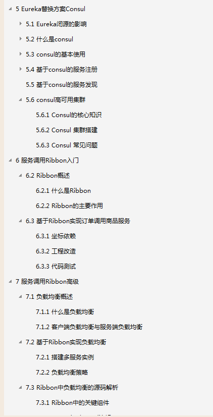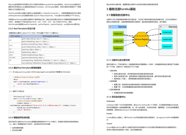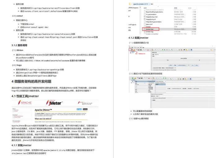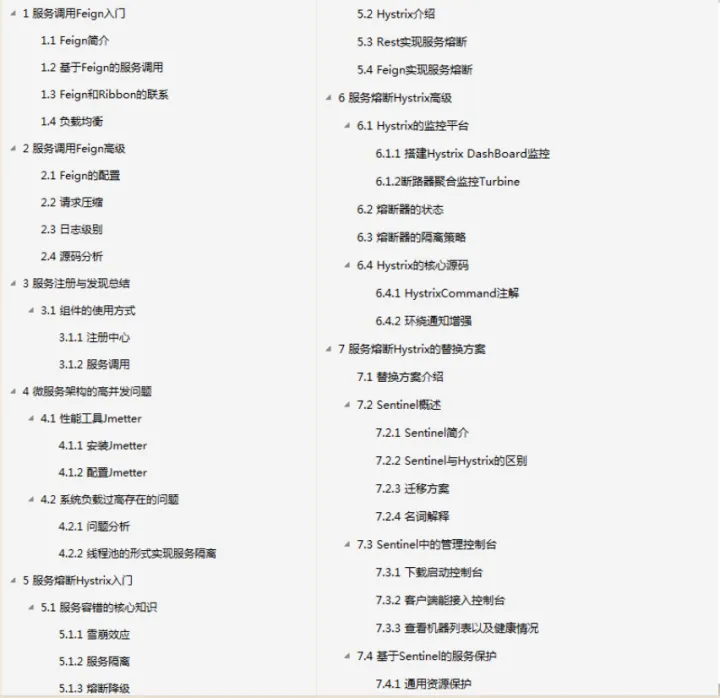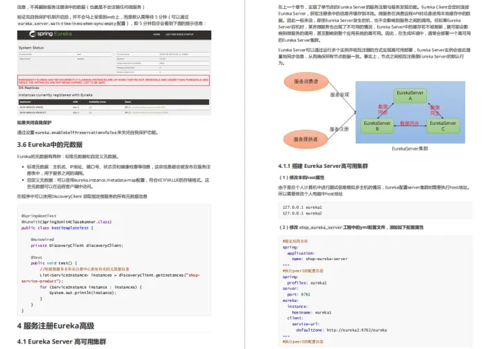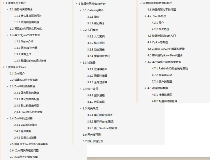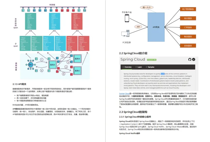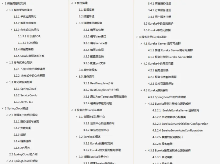 由于篇幅原因,为了不影响阅读在这就展示了整个目录和内容截图,这份已经整理成完整文档的Spring Cloud微服务架构, 获取方式-文末免费获取