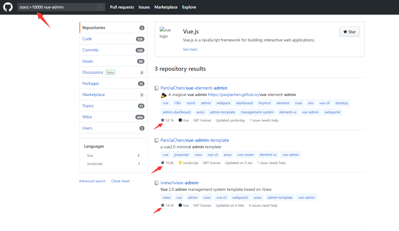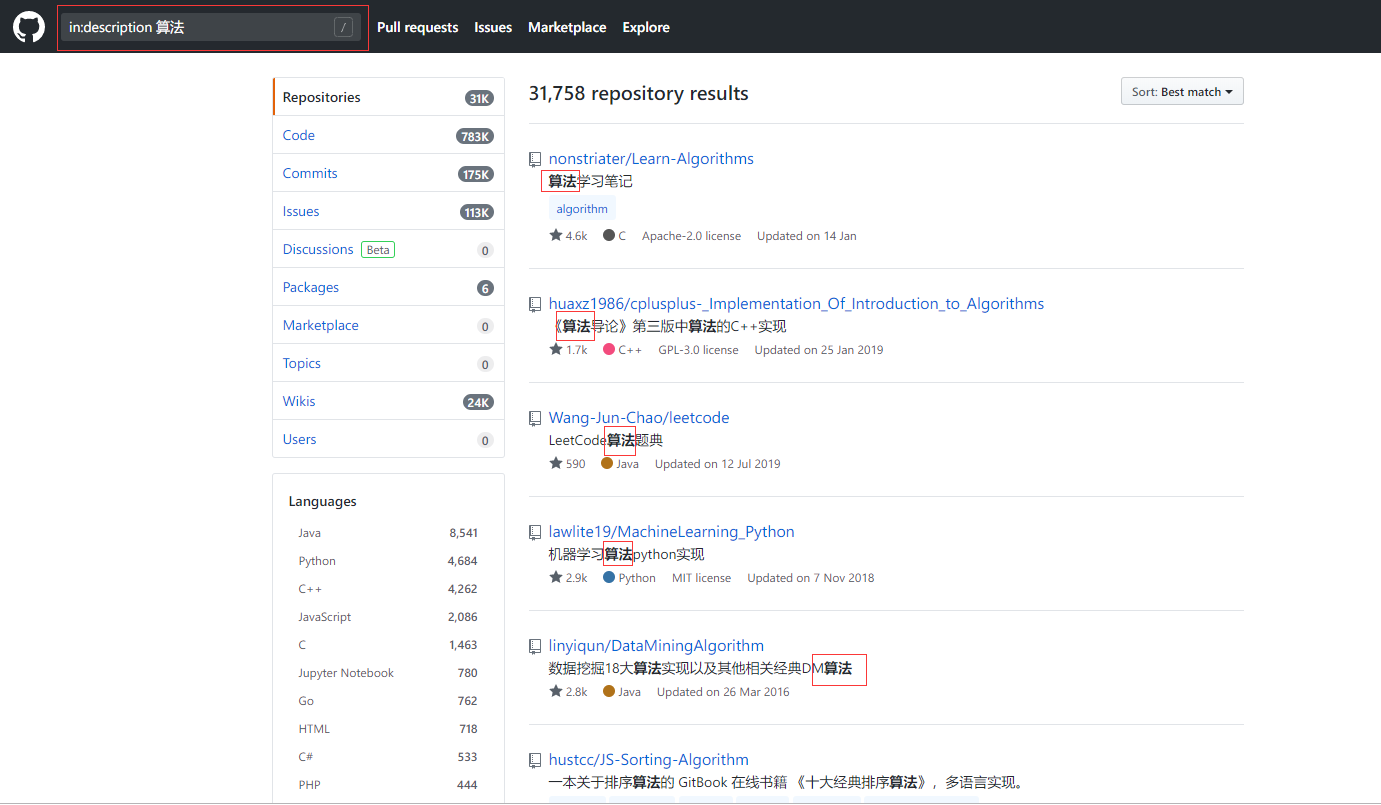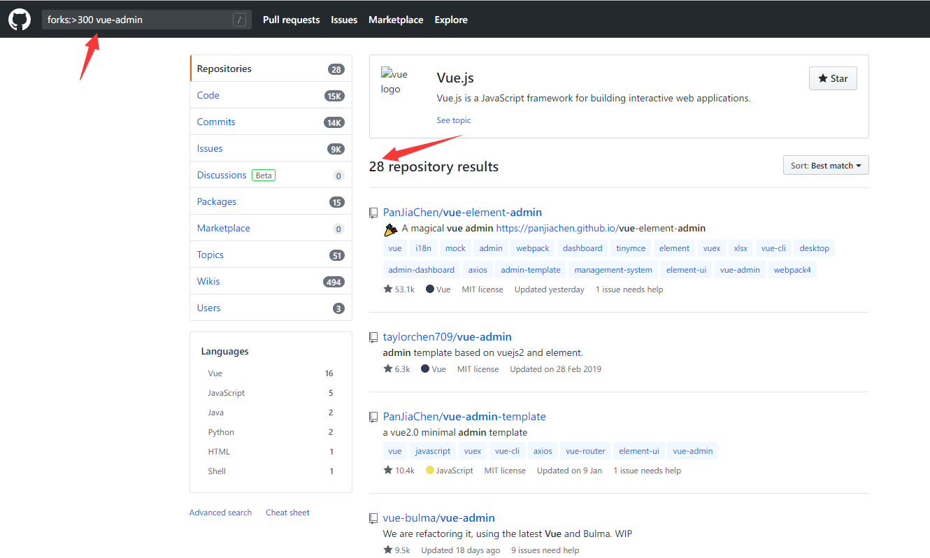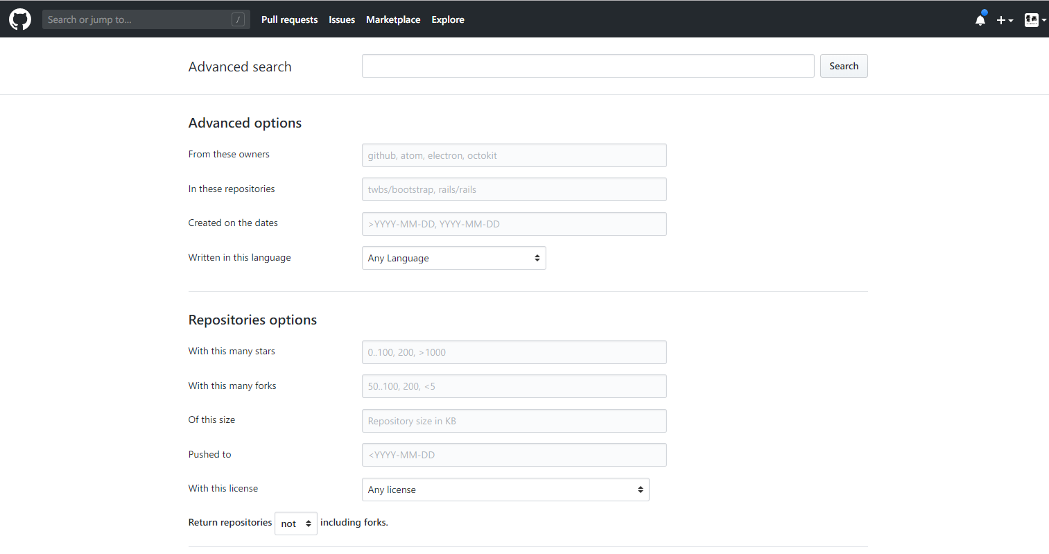 也可以直接使用 GitHub 高级搜索页面 https://github.com/search/advanced