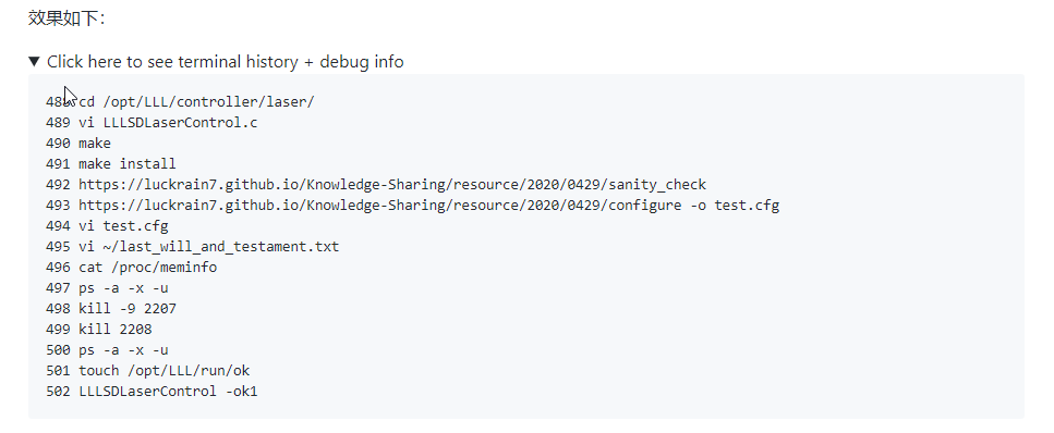 添加冗长的错误日志或冗长程序输出的问题可以解决的错误有帮助的,但如果它占用页的垂直空间,可以考虑使用<details>和<summary>标签。