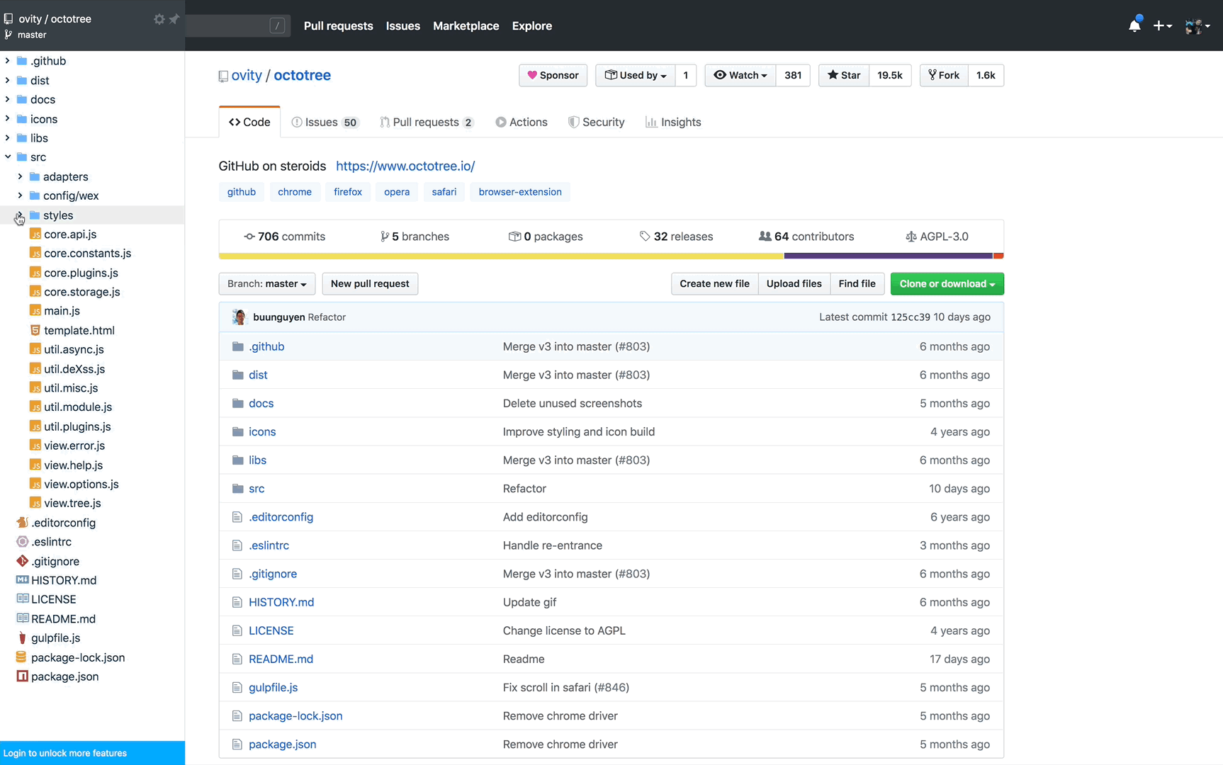 Octotree 浏览器插件,可以帮助您浏览目录,并使用熟悉的树状结构打开文件。