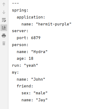 在获得这种格式后的Map后,就可以调用jackson中的方法将Map转换为yml格式的字符串传递给前端了,看一下处理完成后返回给前端的字符串: