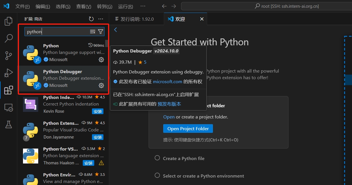 下面,使用vscode连接开发机,并进行debug。上一节中我们已经在Vscode中安装好了Romote-SSH插件,这里可以直接连接开发机。