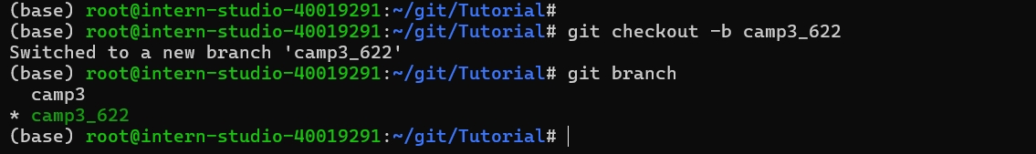 查看当前分支,是我们要使用的camp3分支,所以暂时不需要切换分支: