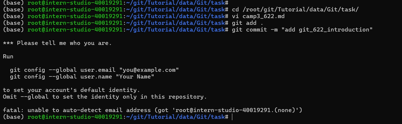 在Tutorial/data/Git/task目录下创建自己的文件后,进行提交: