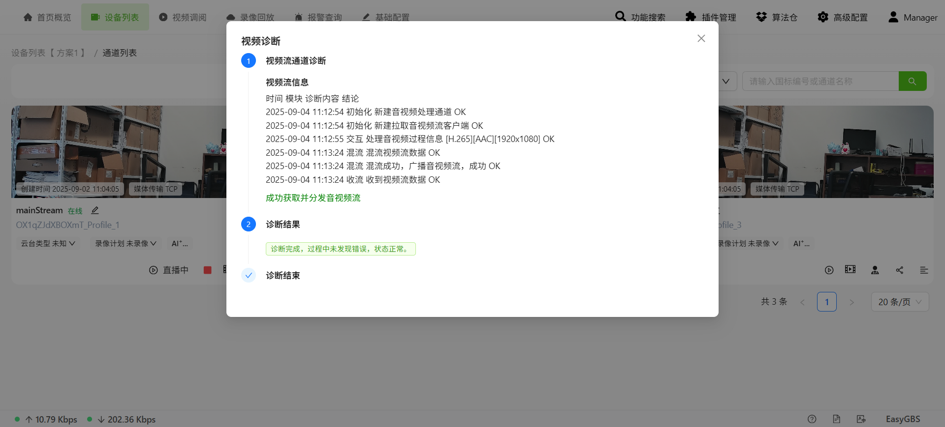 Easy系列平台都内置了诊断工具,像EasyGBS就提供视频直播诊断功能,让故障排查变得简单高效。