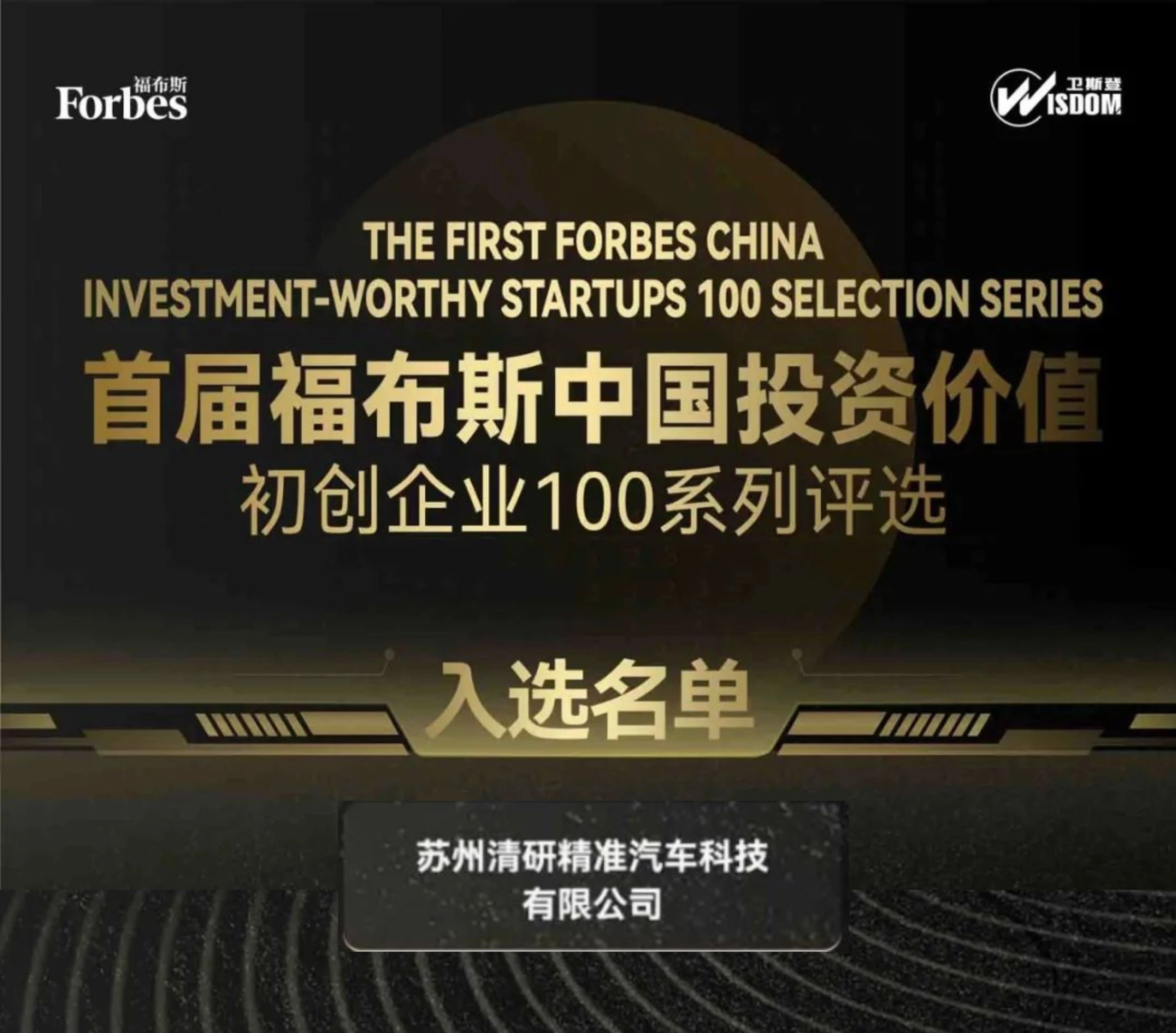 2025年4月7日,国际权威商业媒体《福布斯中国》重磅发布"首届福布斯中国投资价值初创企业100系列评选"榜单。苏州清研精准汽车科技有限公司(简称‘清研精准’)凭借在新能源汽车智能检测领域的技术创新实力与商业化实践成果,从众多候选企业中脱颖而出,荣登榜单并成为该细分领域入选企业之一,彰显了公司在推动新能源汽车产业智能化升级中的标杆价值。