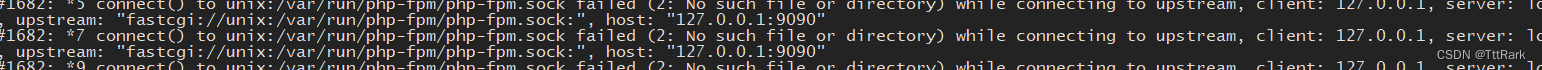 2023/09/07 10:21:36 [crit] 1682#1682: *11 connect() to unix:/var/run/php-fpm/php-fpm.sock failed (2: No such file or directory) while connecting to upstream, client: 127.0.0.1, server: localhost, request: "GET / HTTP/1.1", upstream: "fastcgi://unix:/var/run/php-fpm/php-fpm.sock:", host: "127.0.0.1:9090"