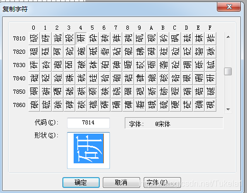 1.选择“编辑”-->“复制字符”,字体咱们选择宋体即可。然后用拼音写个带石字偏旁的字;