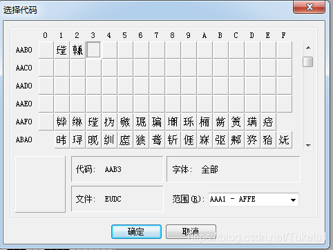 当然,找不到你所需要的字体,咱们还有办法,那就是手动组装了,就是用到另外的一个工具了,刚打开是这样的,你可以随便选择个框,比如我现在的AAB3,然后点击确定。