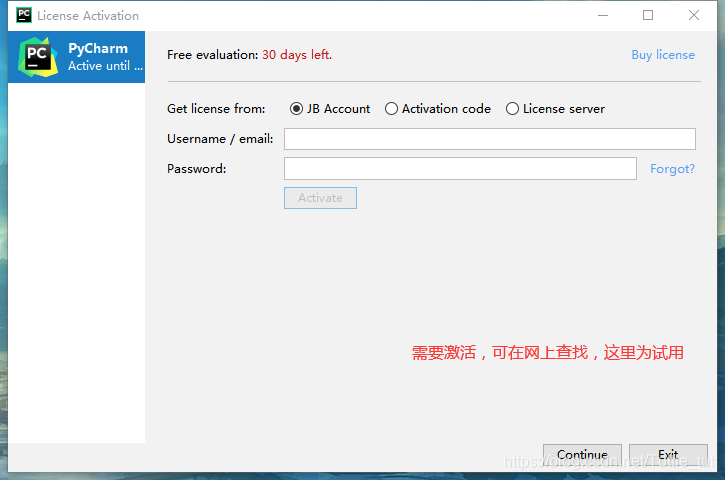 6.点击运行会进入激活界面,我们试用就可,专业的要在网上找到激活码,或进行购买