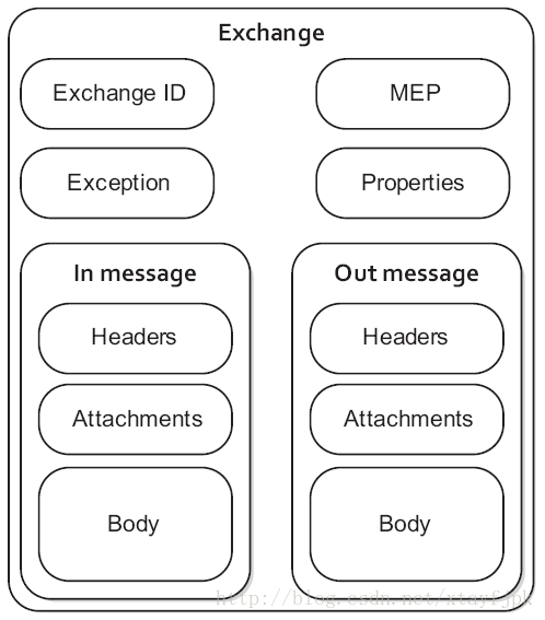 在Camel的route中,消息在Route的各个节点中是以Exchange的形式传递的,所以对Exchange结构的理解对使用Camel来说是很重要的.