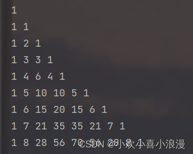 外层的数字都是1 i==j||j==0 i==j意思就是每行最后的值 j==0意思就是每行第一个值