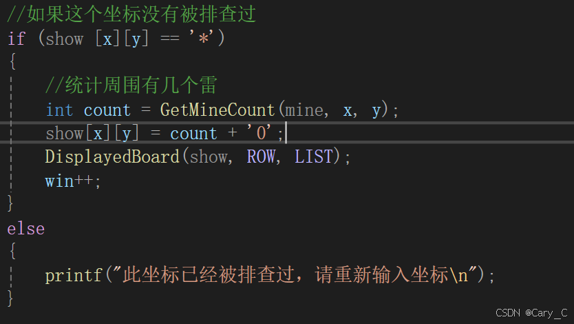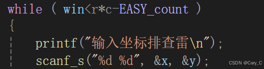 printf("此坐标已经被排查过,请重新输入坐标\n");