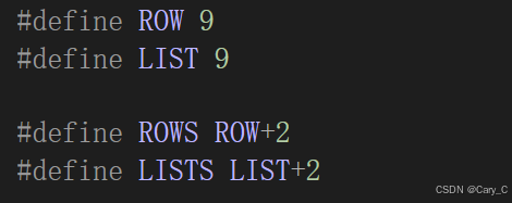 二维数组的大小也是一样 故在game.h头文件中定义ROW和LIST,后续想修改二维数组大小只需要修改ROW和LIST即可,注意,要在主函数中要声明#include “game.h”头文件