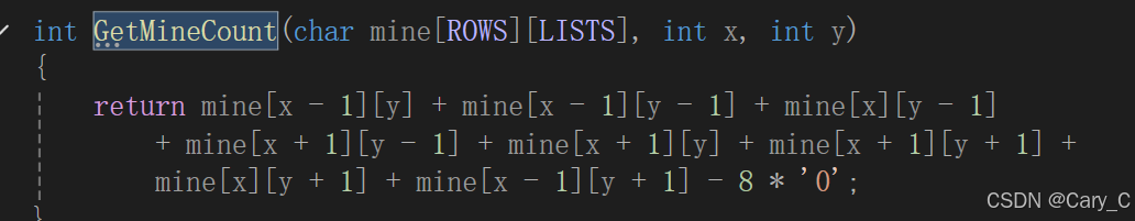 int GetMineCount(char mine[ROWS][LISTS], int x, int y)