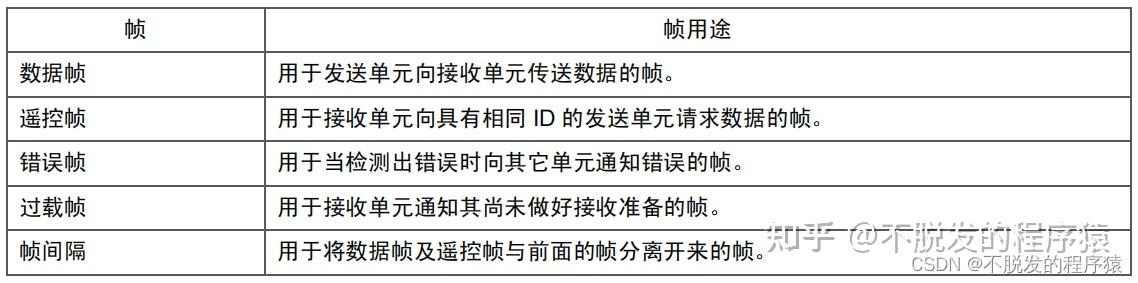 CAN通信是通过以下5种类型的帧进行的: