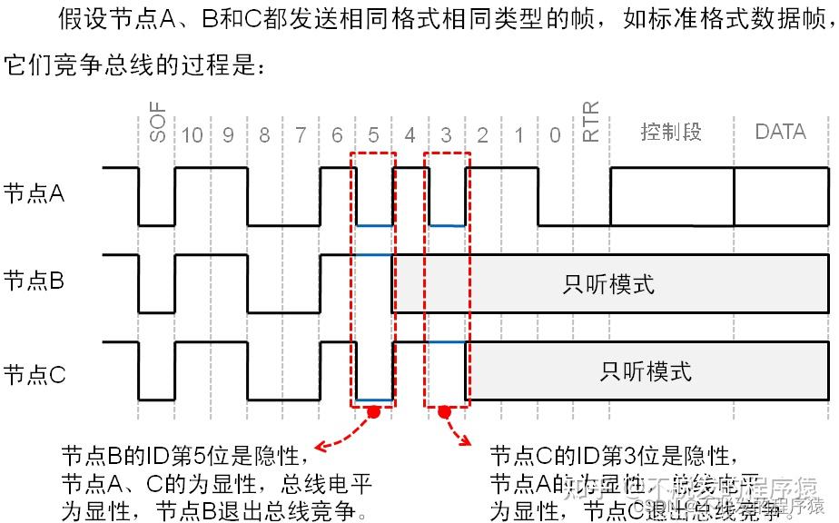 性”具有“包容”的意味,只有所有的单元都输出隐性电平,总线上才为隐性电平。(显性电平比