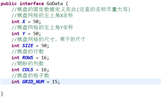 棋盘画线:接口当中定义的属性是常量,所以我们创建一个接口(interface)把棋盘的固定数据定义在此